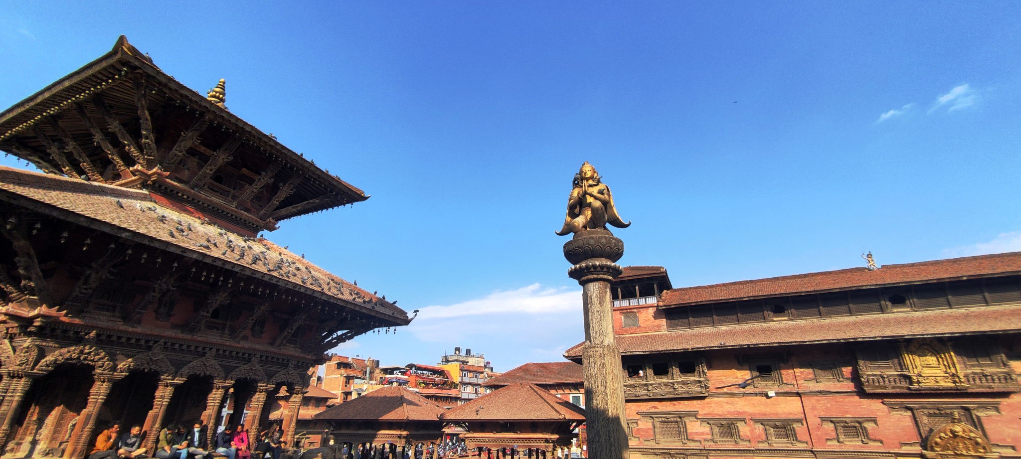 Weiter zu einem kleinen Snack bei Delicious Kitchen und dann mit dem Taxi nach Patan. Die Tempelanlage ist nach dem Erdbeben noch nicht ganz in ihrer früheren Schönheit zu bewundern, dafür gab es eine Prozession zu Ehren eines 77-jährigen Paares, die wurden in Sänften getragen und begleitet von einer Schar in Tracht. Auf einen weiteren Yaktee lieber verzichtet.