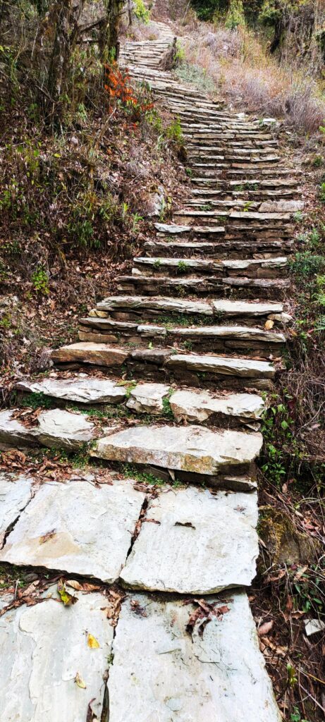 Dann kam der Regen und wieder Stufen, diesmal in rutschig. Am Ende im Nangi Community Lodge angekommen.
