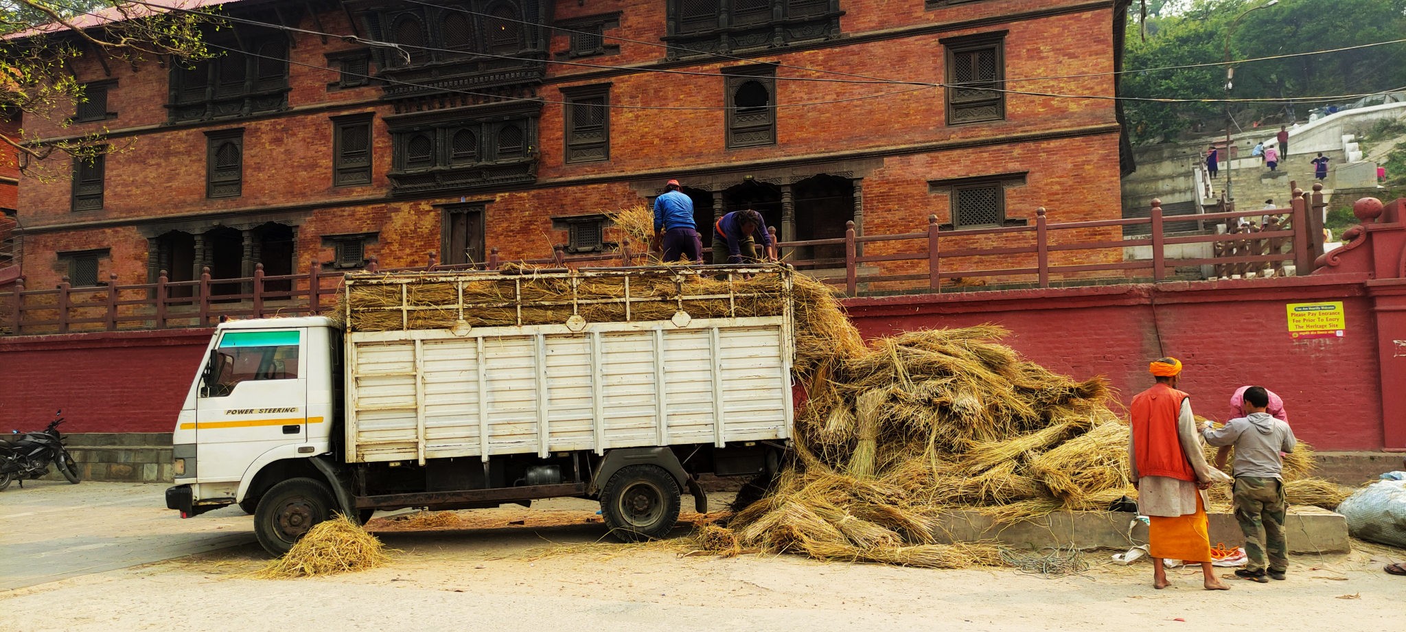 1000 Rupees sind 7,50 Euro Der Versuch, im Terminal einzuchecken, schlug fehl. Die Airline fliegt heute nicht. Um wieder heraus zu kommen war ein wenig Bürokratie nötig.Dichter Betrieb an den Ghats von Pasupatinath.Lieferung von Anzündestroh.Wer denkt sich denn sowas aus?die all seeing Buddha eyes kommen bei dem Smog nicht weit.